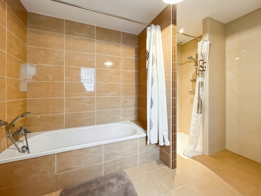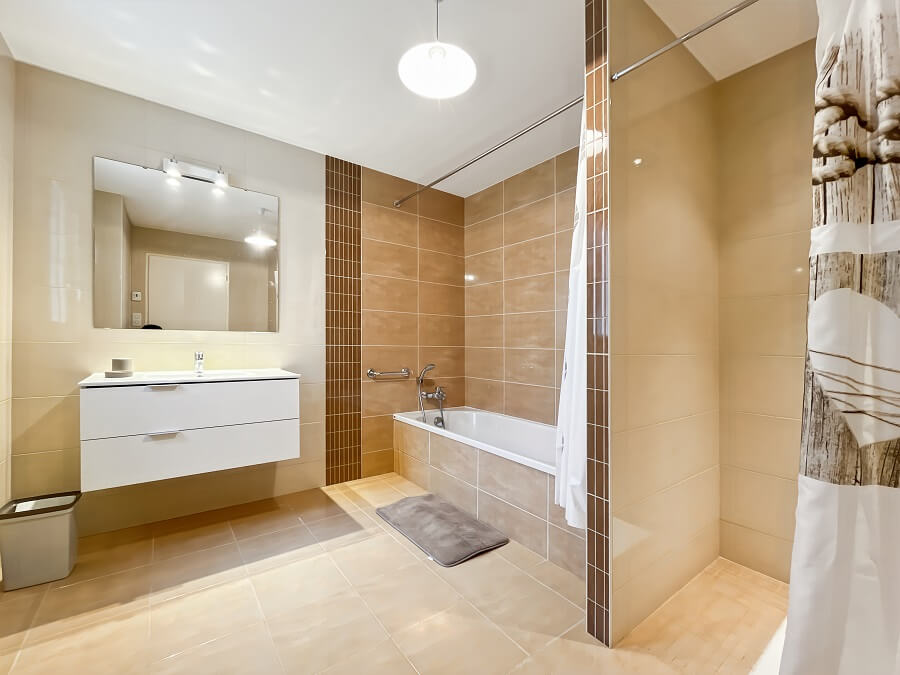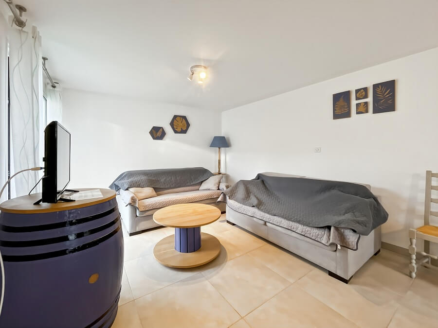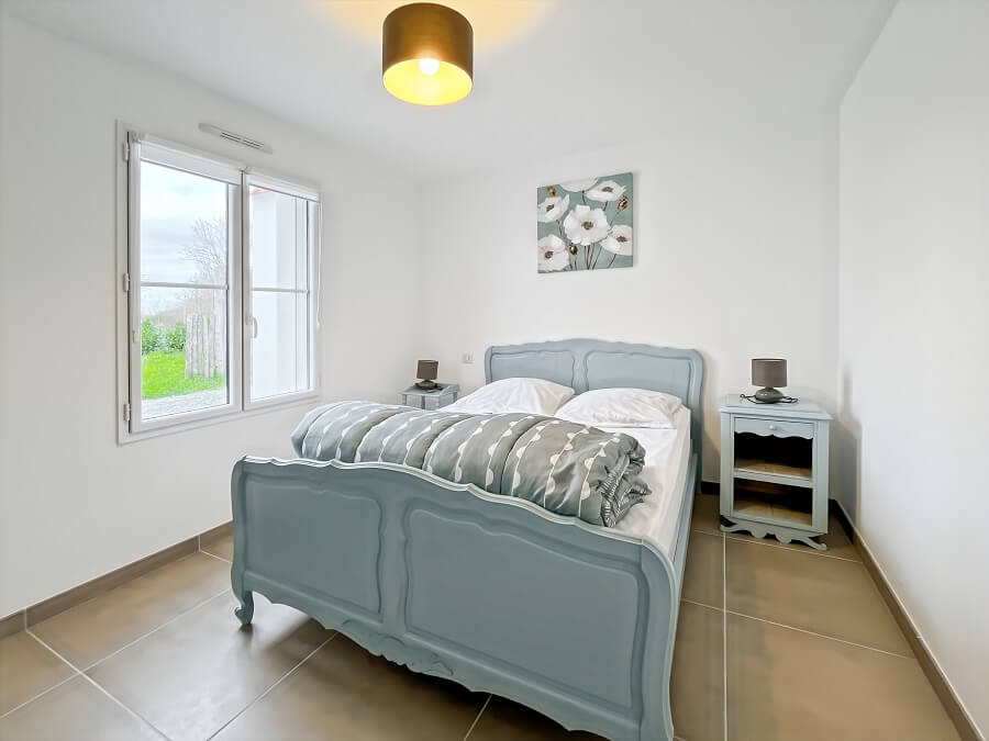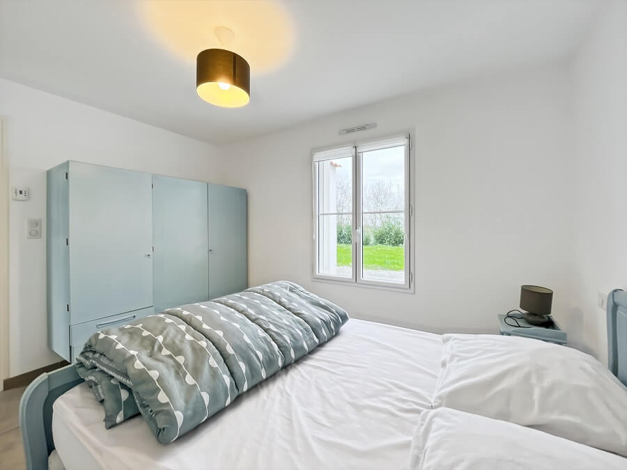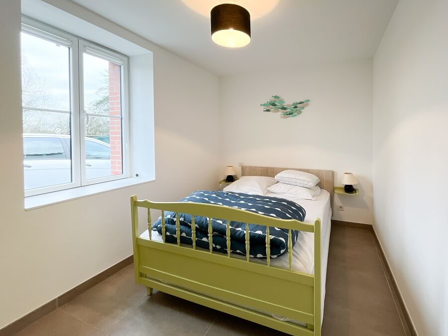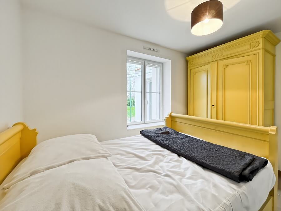 Elle dispose d'une 1ère chambre avec un lit 140, d'une 2ème chambre avec un lit 140, d'une 3ème chambre avec un lit 120 (couchage pour une seule personne) et d'un convertible dans le salon.