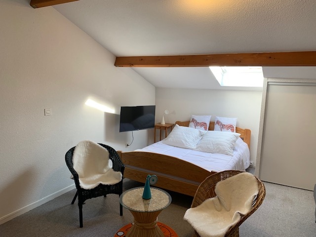 Cet appartement dispose d'une chambre avec deux lits de 80 (séparés ou rapprochés) &. d'une mezzanine : un lit de 140 (TV).