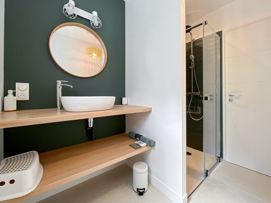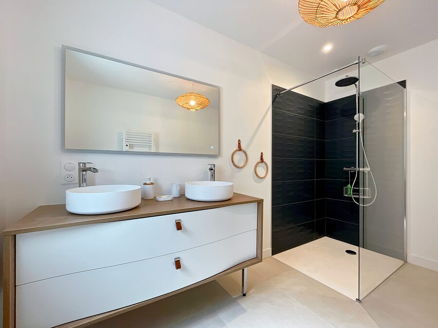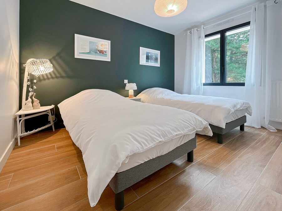 Vous disposerez au rez-de-chaussée, d'une 1ère chambre avec un lit de 160 &. d'une 2ème chambre avec un lit de 160 - Salle d'eau &. WC séparés.