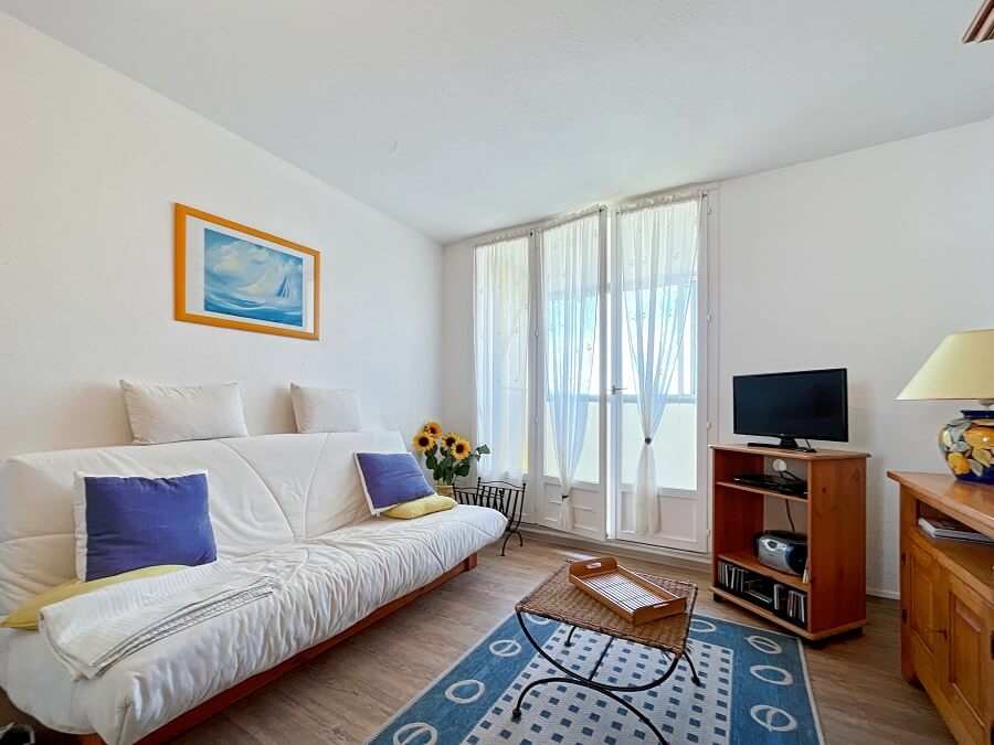 Cet appartement proche de la mer est idéal pour passer des vacances en toute tranquillité. Situé proche des commerces, cet hébergement saisonnier dispose d'un séjour donnant sur la loggia, d'une cuisine ouverte, de deux chambres ainsi que d'une salle d'eau avec WC séparés.
