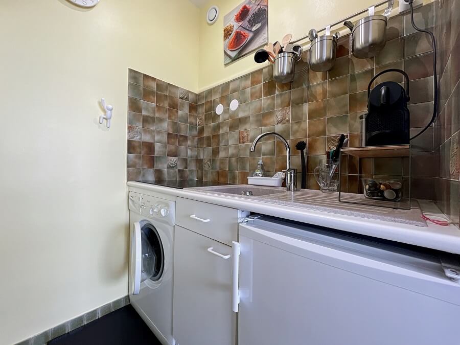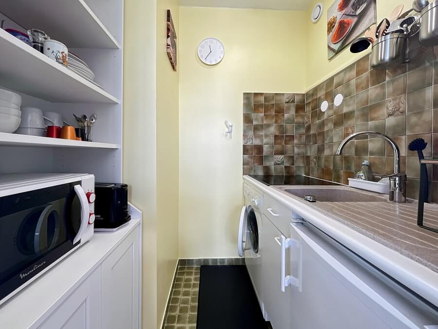 Cet appartement de vacances se compose d'une cuisine équipée, d'un séjour avec canapé lit double, d'une chambre avec un lit double (lit de 140) et d'une salle d'eau avec WC.