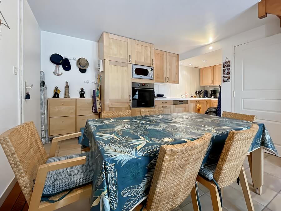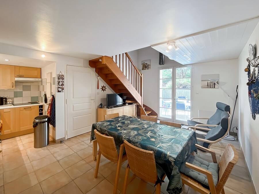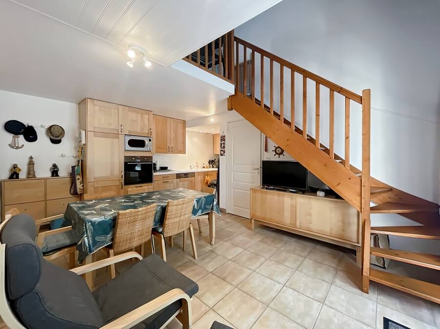 Ce logement se compose d'un séjour avec une cuisine ouverte toute équipée, d'une chambre parentale au rez-de-chaussée avec un lit double (lit de 160cm) et une salle d'eau.