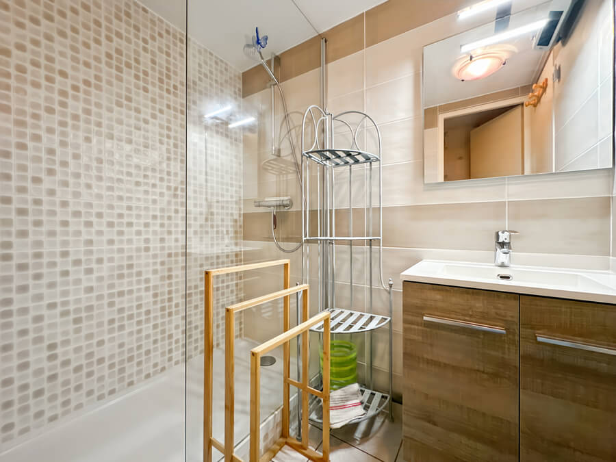 Cette location de vacances se compose d'une entrée avec un coin alcôve ayant pour couchage deux lits tiroirs simples (lits de 80) pouvant être rapprochés formant un lit double, d'une cuisine, d'un salon avec vue sur la mer (Lit armoire de 140 pour couchage) et d'une salle d'eau avec WC séparés.
