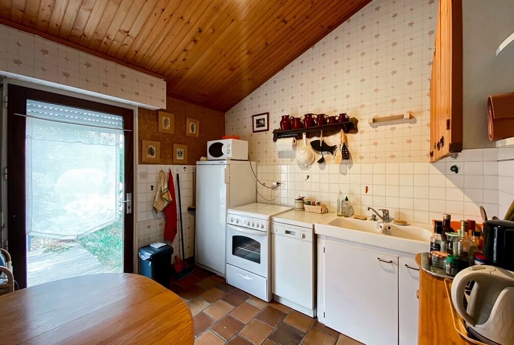 Cette maison de vacances se compose d'un spacieux séjour, d'une cuisine séparée, d'une chambre avec un lit double (lit de 140), d'une mezzanine avec trois lits simples (deux lits de 80 et un lit de 70) et d'une salle d'eau avec WC séparés.