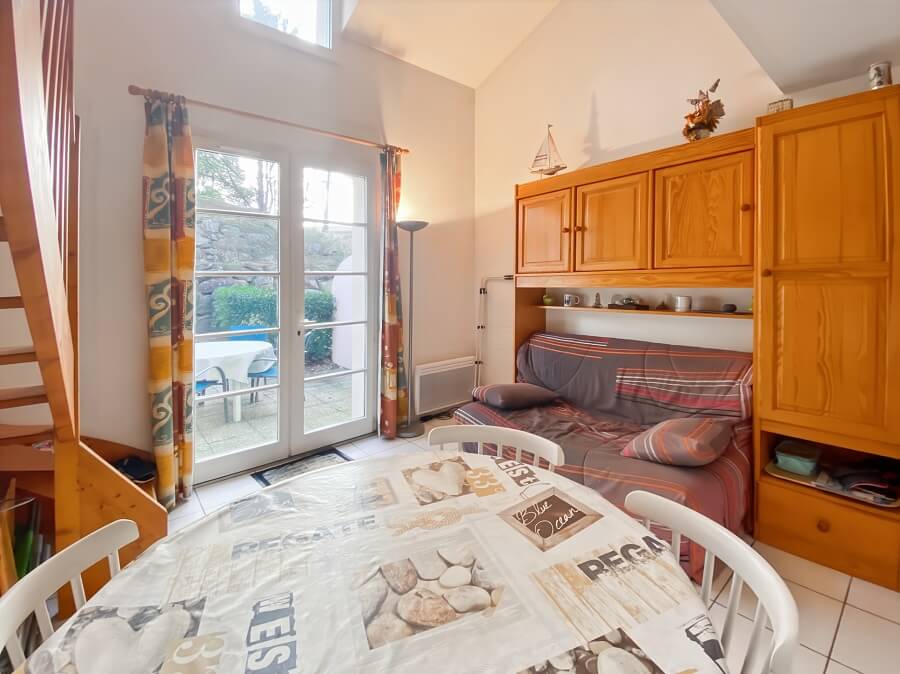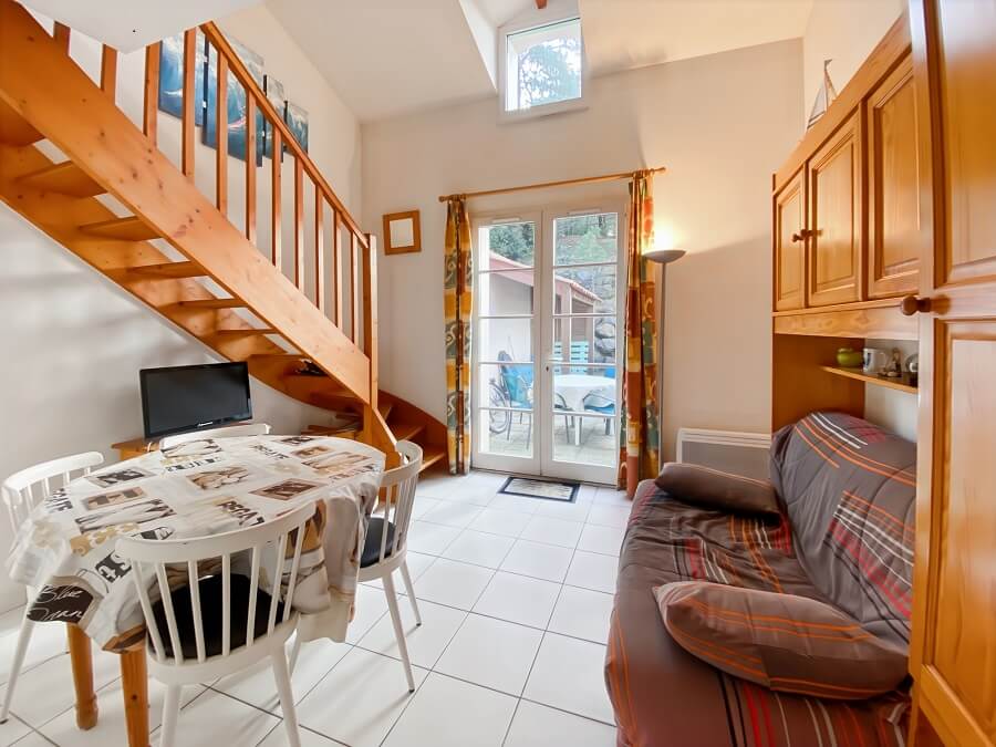 Cette maison de vacances se compose d'un séjour (BZ pour 1 personne) avec un coin cuisine équipée, d'une mezzanine avec un lit double (lit de 140) et d'un lit simple (lit de 90), d'une salle d'eau avec WC séparés.