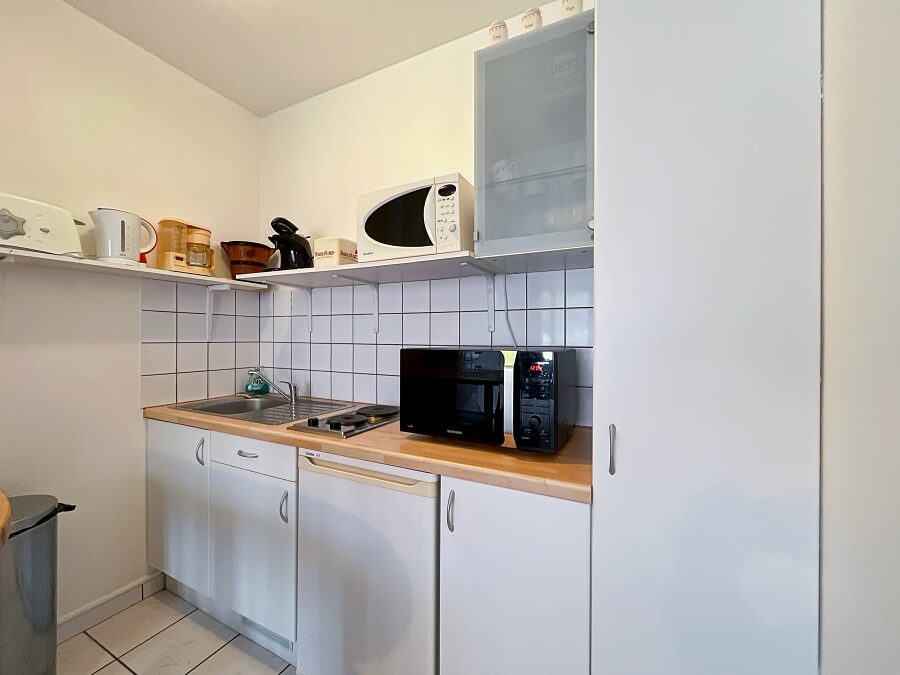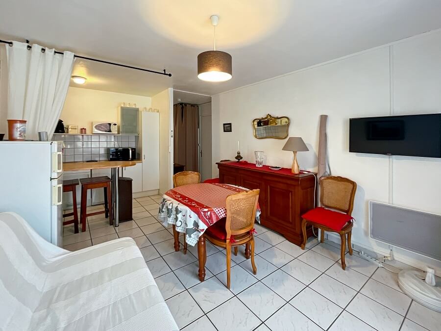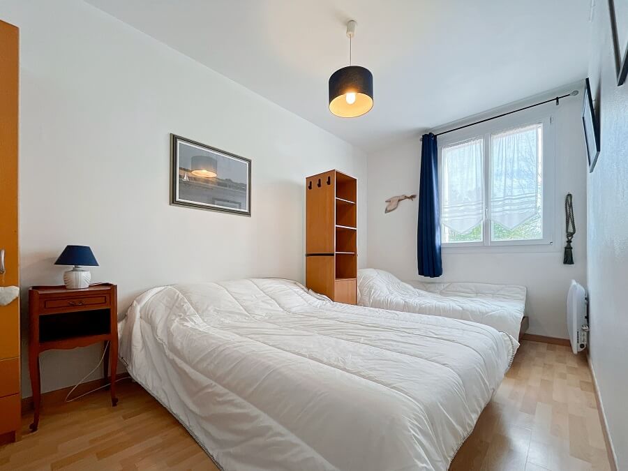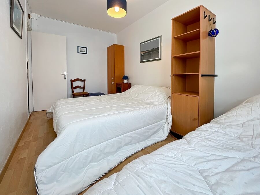 Cet appartement se compose d'un séjour (clic-clac pour 1 personne) avec un coin cuisine, d'une chambre avec un lit double (lit de 140) et d'un lit simple (lit de 90) et d'une salle d'eau avec WC.