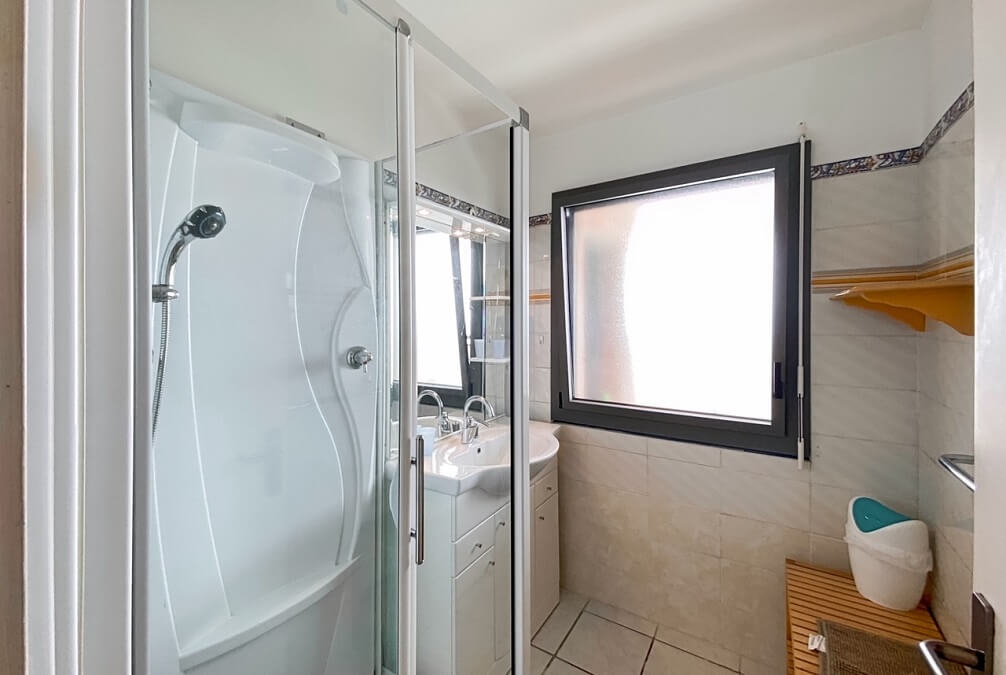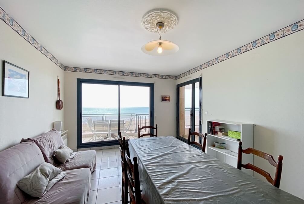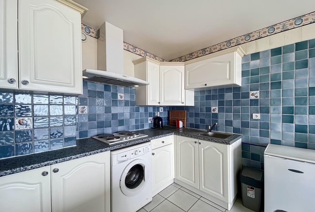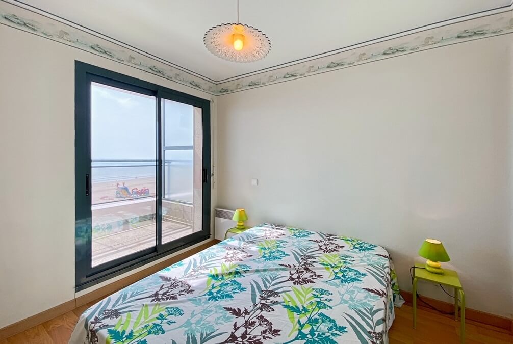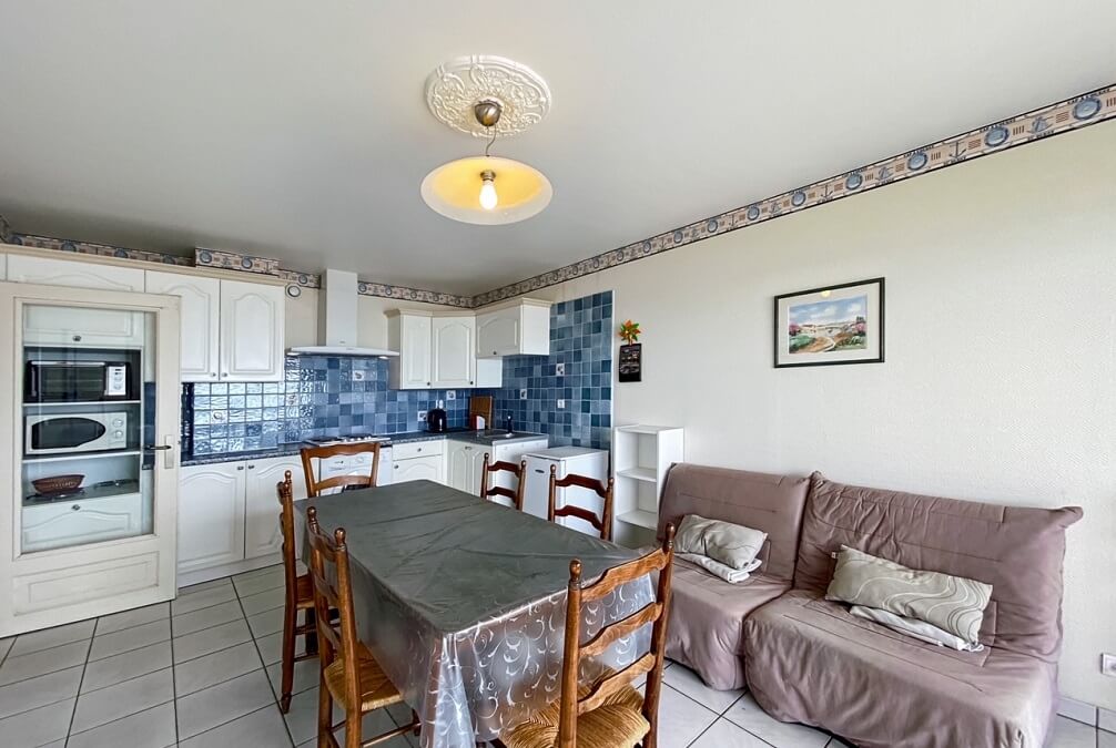 Cet appartement de vacances se compose d'un séjour avec cuisine (2 BZ pour couchage), d'une chambre avec un lit double (lit de 140) offrant une vue face mer, d'une salle d'eau avec WC séparés.