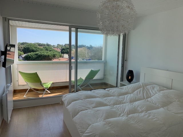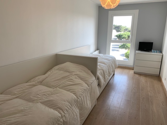 Cet appartement de vacances se compose d'un séjour/cuisine avec balcon vous offrant une agréable vue sur le marché de Saint Jean de Monts. Deux chambres se trouvant à l'étage dont une avec un lit de 140 et une second avec trois lits de 90 dont un lit tiroir. Ces chambres possèdent une télévision. Vous y trouverez également une salle de bain avec deux WC séparés (RDC et à l'étage).