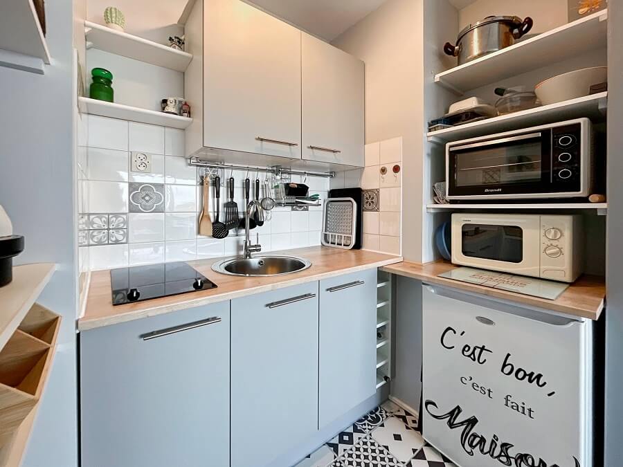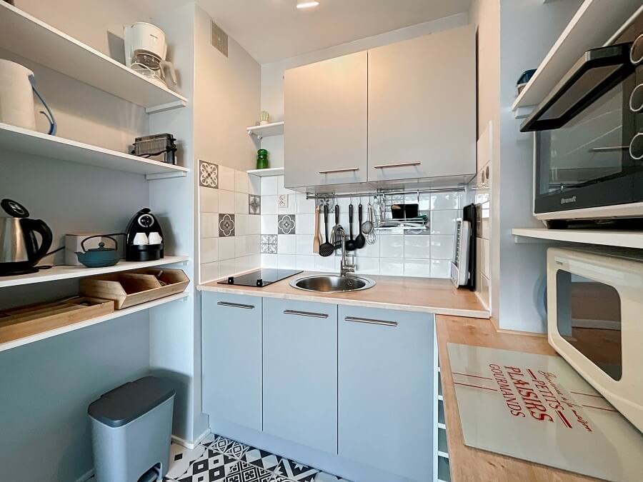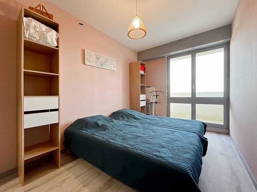L'appartement dispose d'une chambre avec deux lits de 80cm (1 lit de 160cm une fois rapprochés) ainsi qu'un canapé convertible dans le séjour