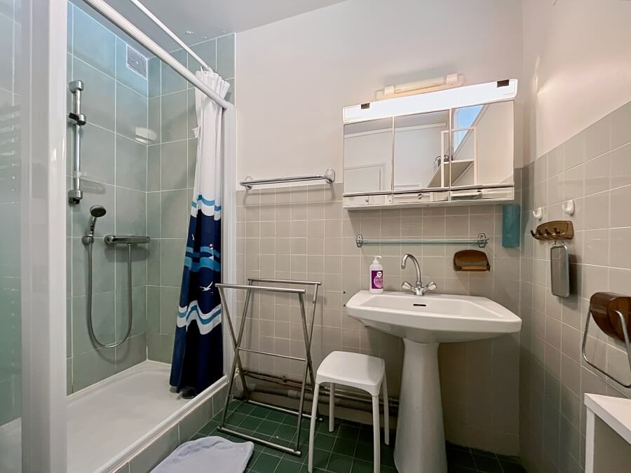 Cet appartement à louer dispose d'une chambre avec un lit de 140 et deux lit superposés, et d'un clic-clac dans le séjour.