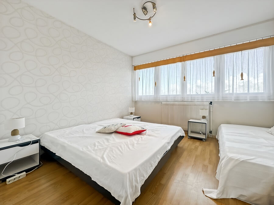 Cet appartement à louer dispose d'un canapé lit dans le séjour ainsi que de 3 lits de 90 dans la chambre.