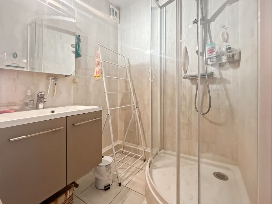 Ce logement situé au premier étage (sans ascenseur), se compose d'une cuisine équipée, d'un séjour, d'une chambre, d'une salle d'eau avec WC séparés et d'un balcon.