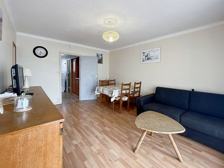 Cet appartement situé au 2ème étage (sans ascenseur) se compose d'un séjour avec un balcon, d'une cuisine, d'une chambre avec deux lits doubles (lits de 140) et d'une salle d'eau avec WC.