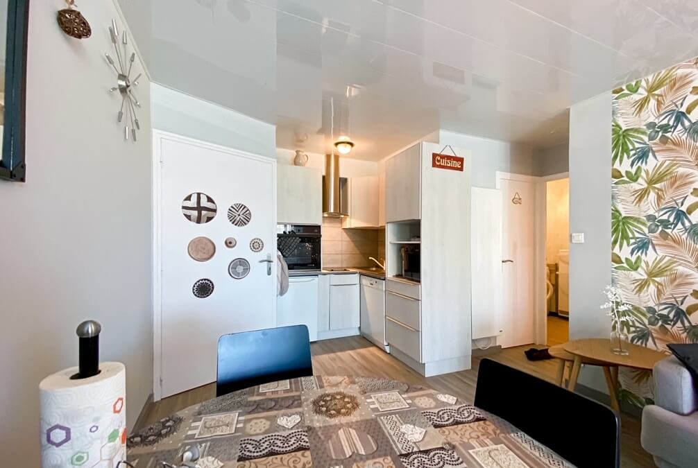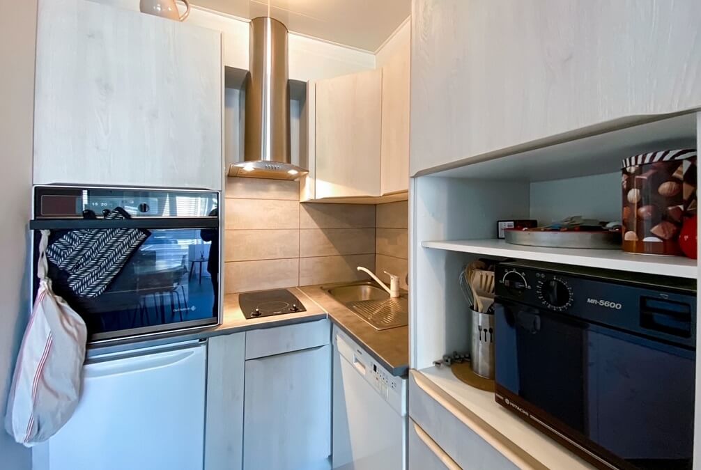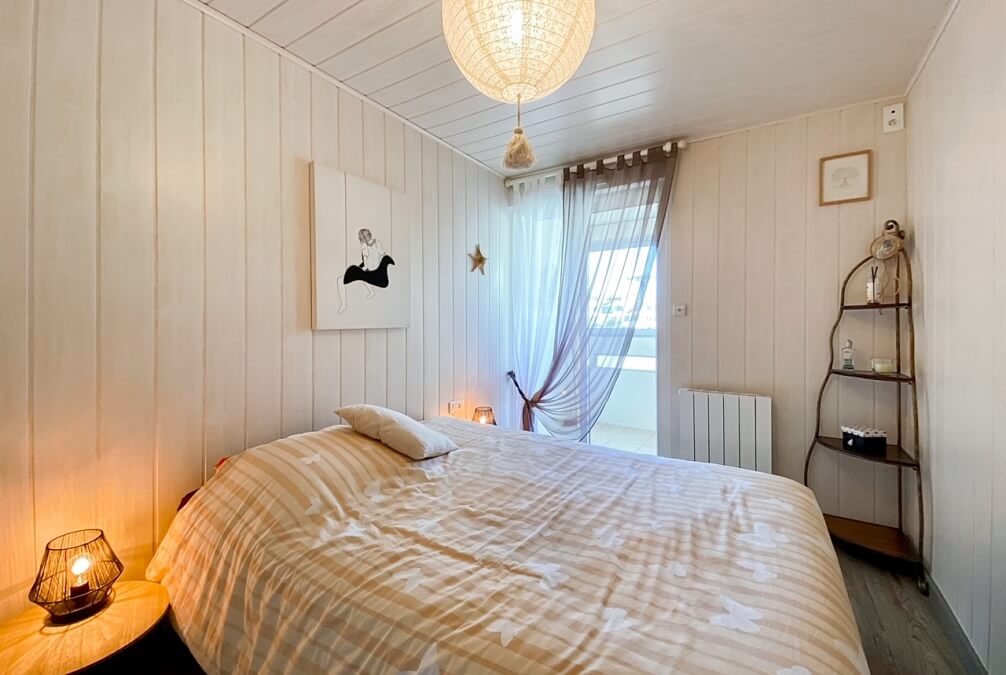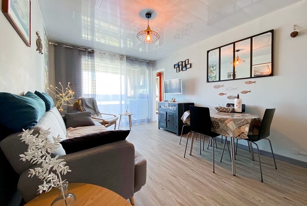 Cet appartement rénové proche de la mer est idéal pour passer des vacances en toute tranquillité. Cet hébergement saisonnier dispose d'un salon avec cuisine ouverte toute équipée donnant sur une loggia, de deux chambres, d'une salle d'eau, et d'un WC séparé.