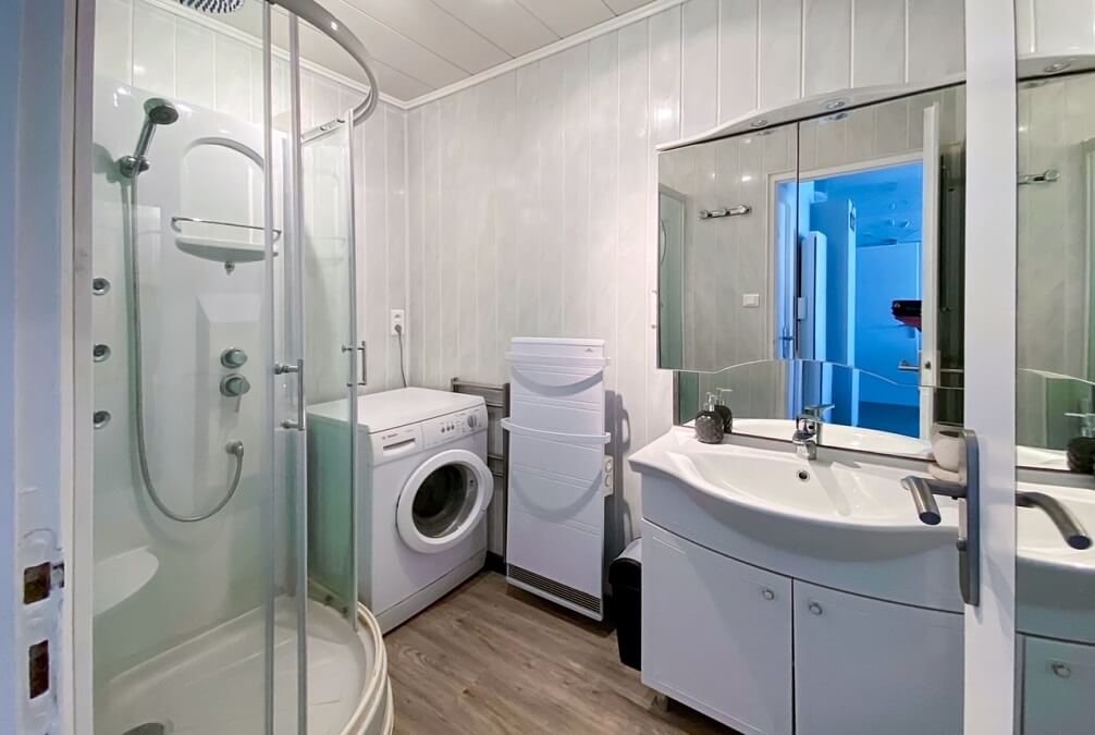 Vous retrouverez dans la première chambre un lit double de 140cm. La seconde chambre quant à elle dispose de lits superposés (en bas : lit double de 140cm / en haut : lit simple de 90cm) et une seconde loggia.