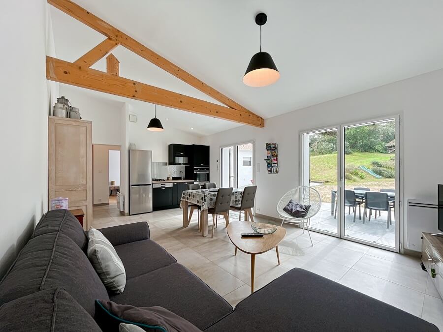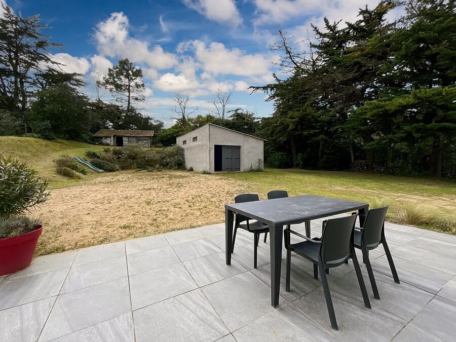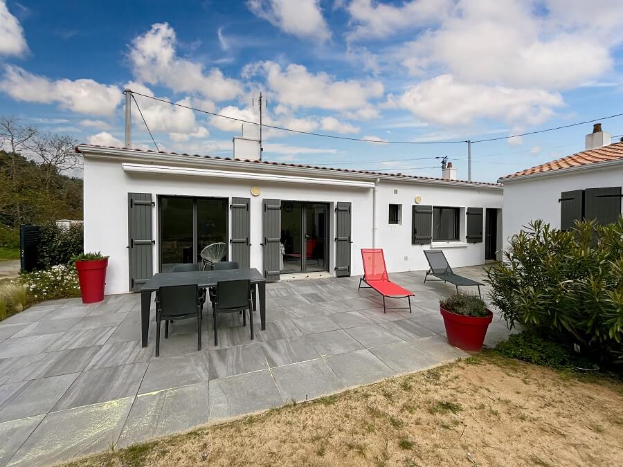Située au bout d'une impasse, découvrez cette spacieuse maison fraichement rénovée à louer à Saint Jean de Monts avec un grand jardin et un accès direct aux chemins forestiers.