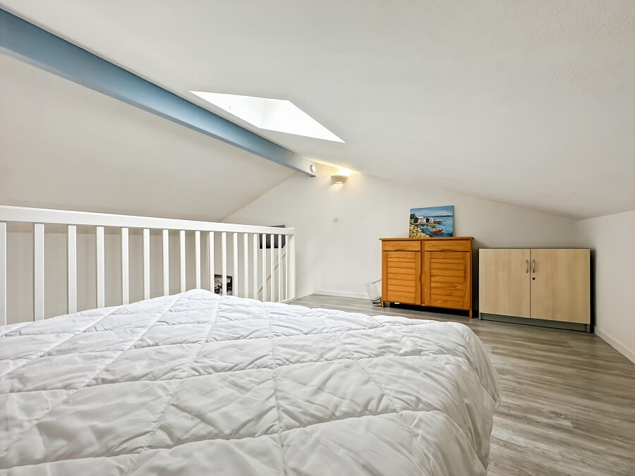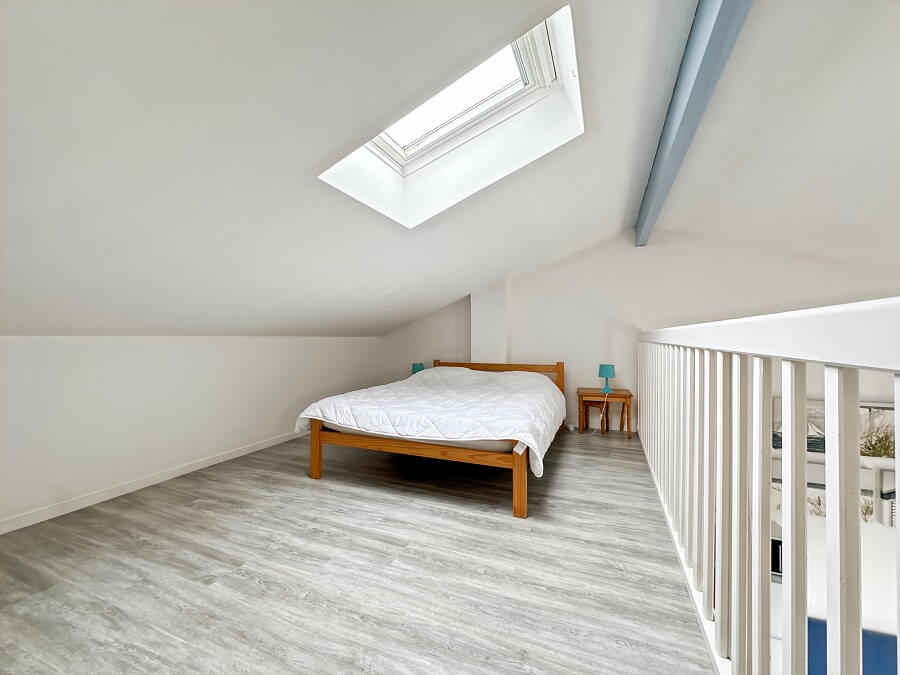 La chambre au rez-de-chaussée ainsi que la mezzanine sont équipées d'un lit double de 140cm. Vous retrouverez dans le séjour un clic-clac pour une personne.