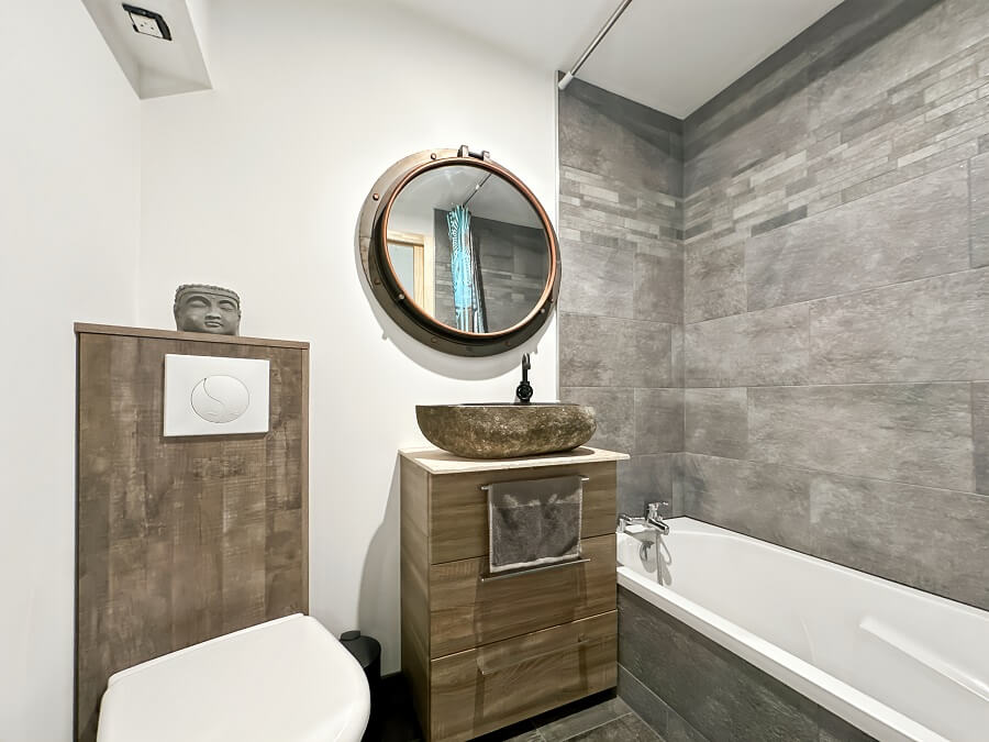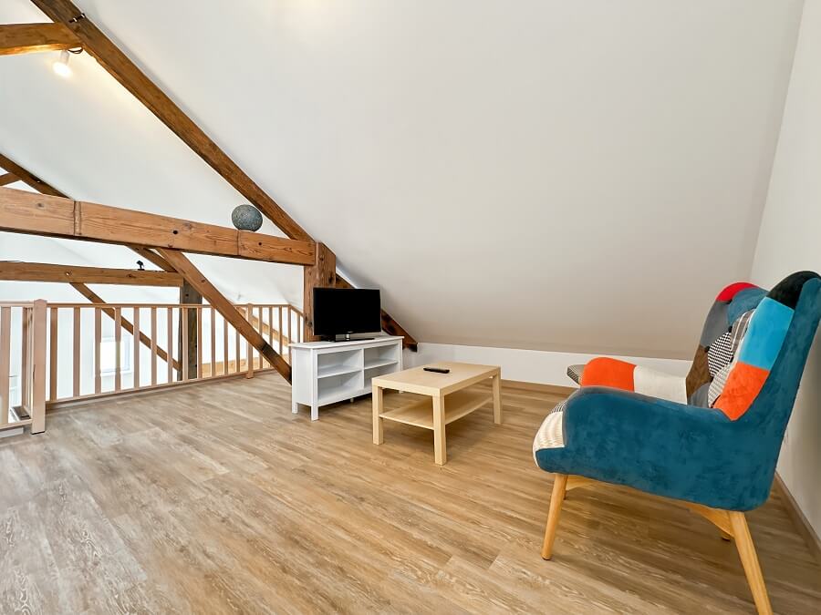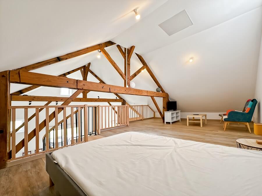 Vous retrouverez dans la première chambre un lit double de 160cm et un placard. La seconde chambre est composée d'un lit double de 140cm et d'un placard. La mezzanine dispose quant à elle d'un lit double de 140cm et d'un petit coin salon avec une télévision.