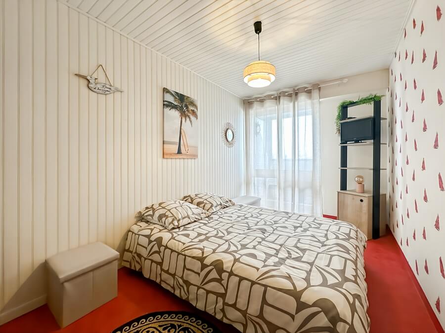 Cet appartement, situé au 2ème étage avec ascenseur, se compose d'une pièce de vie avec un clic-clac pour deux personnes, d'une cuisine équipée, d'une chambre avec un lit double de 140cm et une télévision, d'une salle de bain avec WC séparés et d'une loggia.