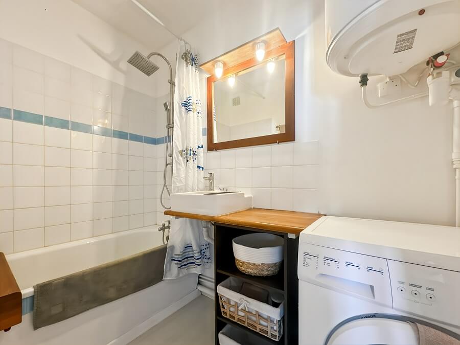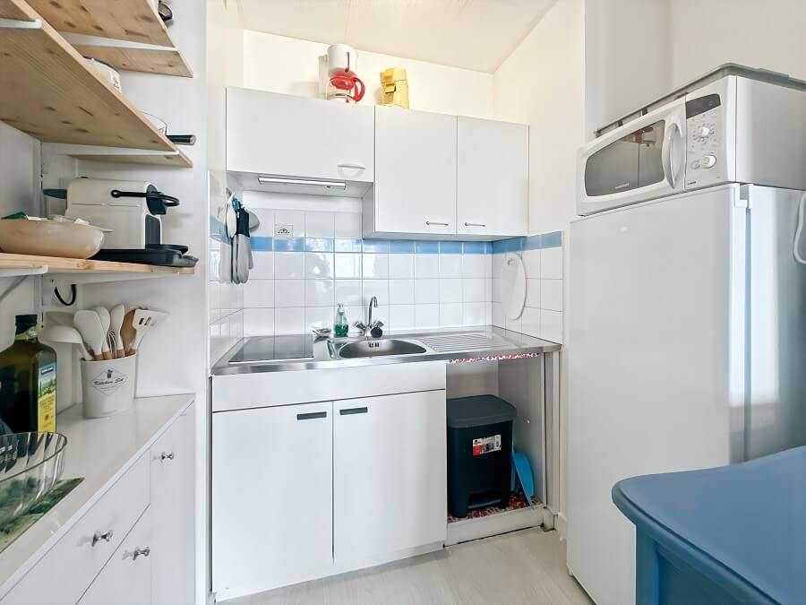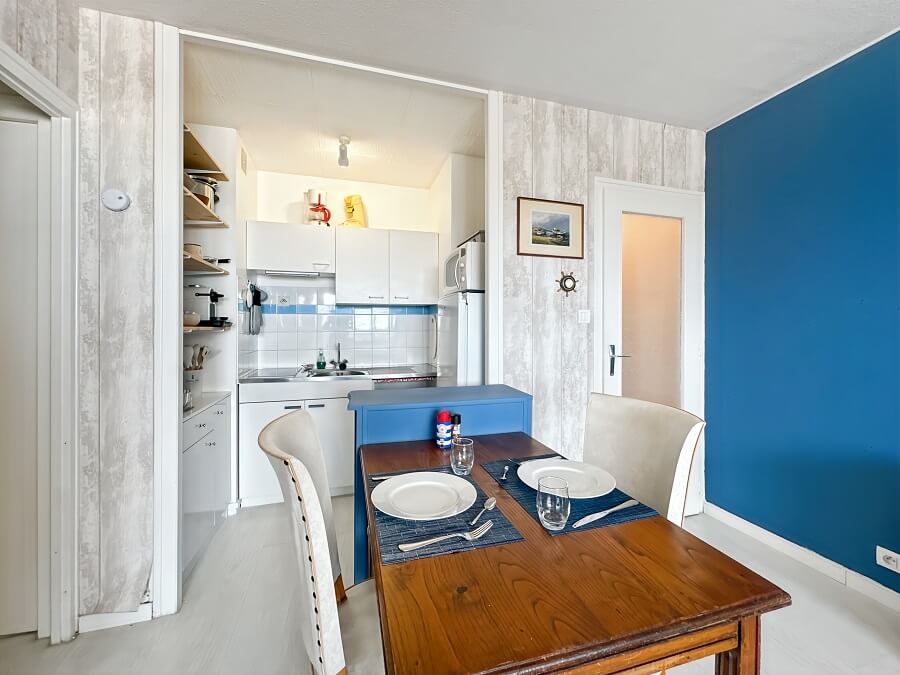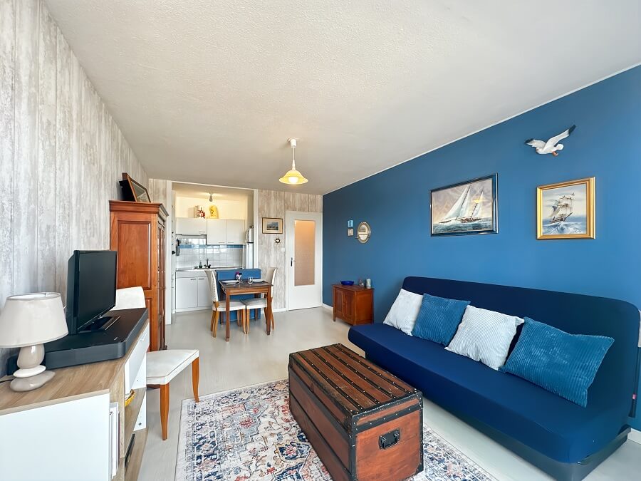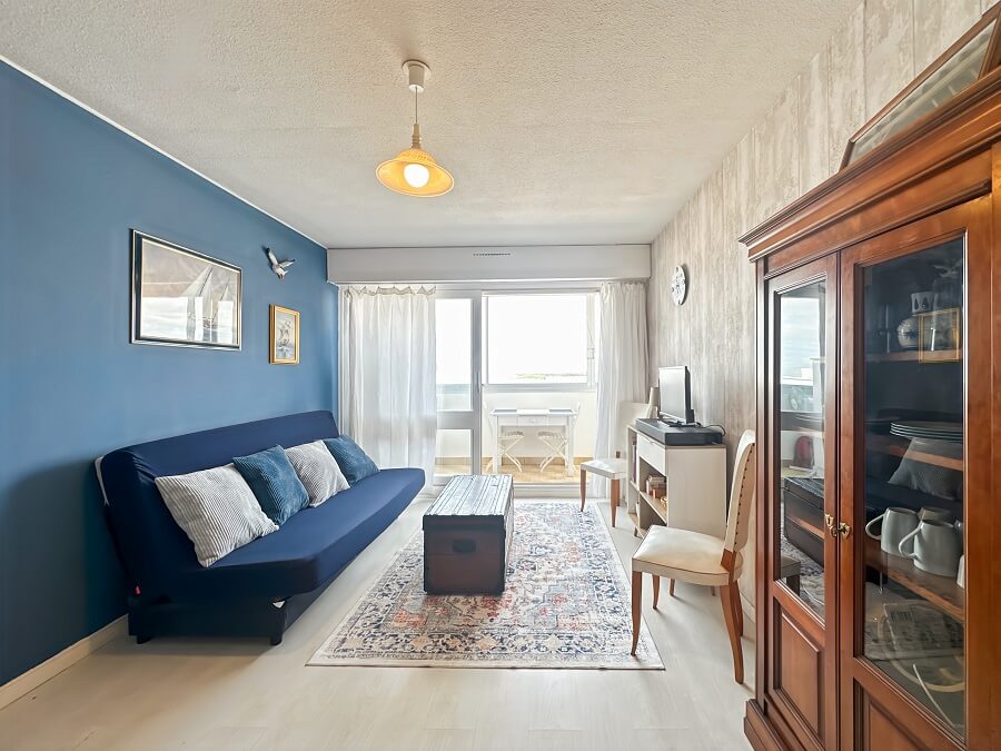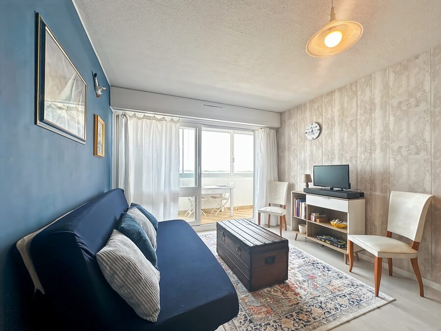 Cet appartement, situé au 6ème étage avec ascenseur, se compose d'une pièce de vie avec un clic-clac pour deux personnes, d'une cuisine équipée, d'une chambre avec un lit double de 140cm, d'une salle de bain avec WC séparés et d'une loggia.