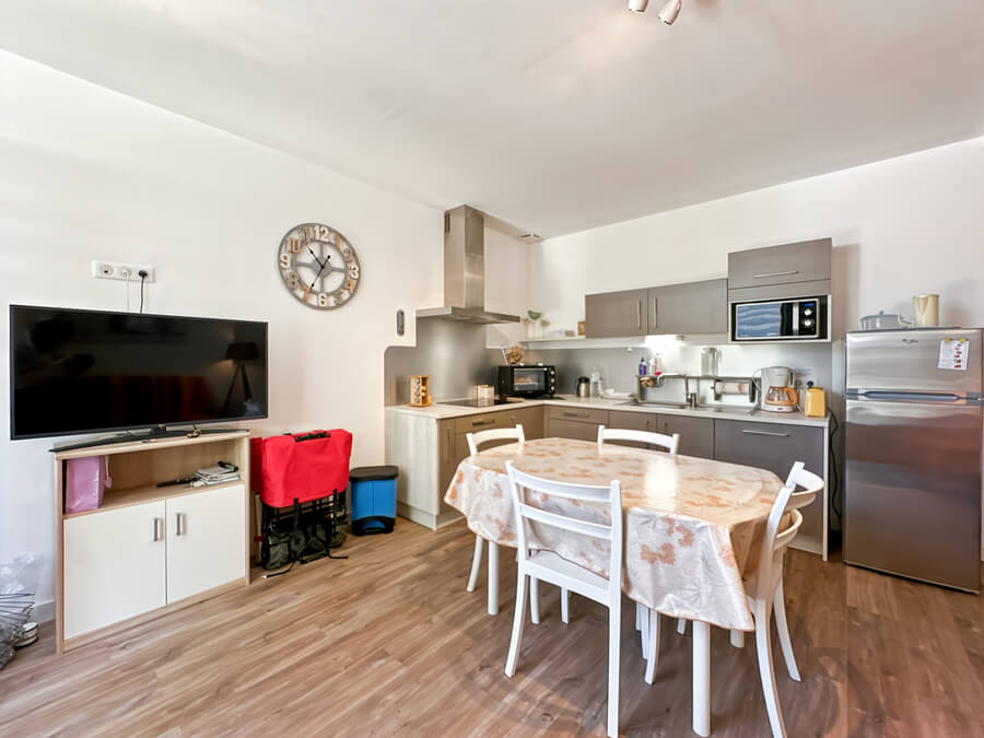 Cette maison à louer se compose d'un séjour avec cuisine ouverte fraichement rénové avec un clic clac pour deux personnes, d'une chambre avec un lit double (lit de 140), d'une salle d'eau avec WC séparés et d'une terrasse.