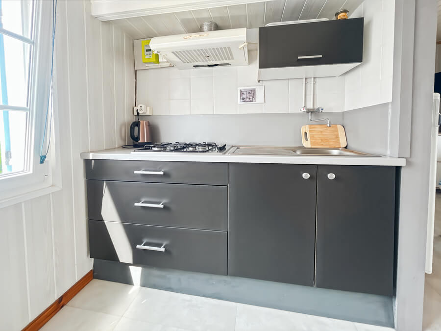 Vous retrouverez dans la première chambre un lit double de 140cm. La seconde chambre dispose de deux lits superposés (120cm en bas et 80cm en haut).