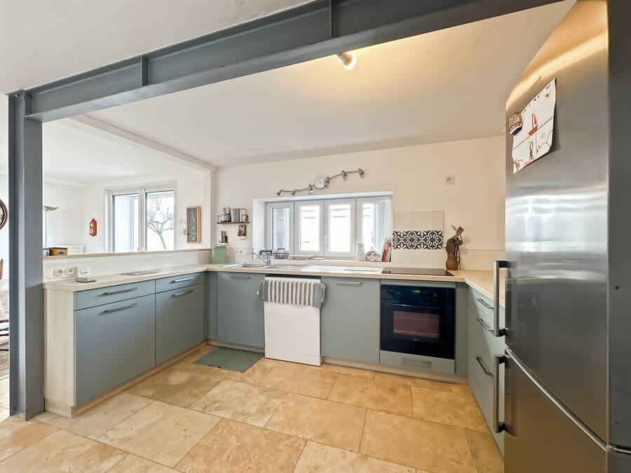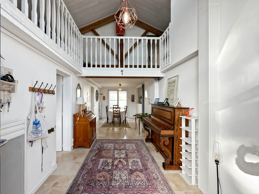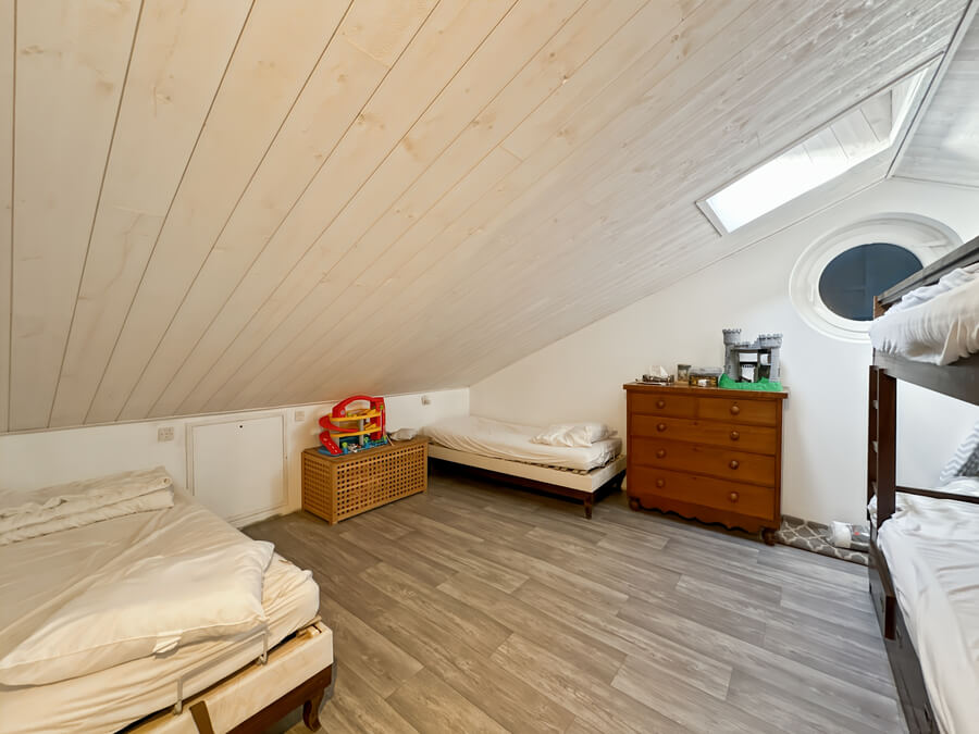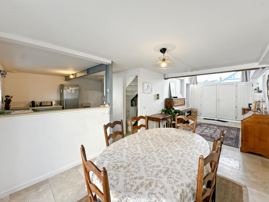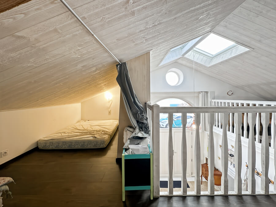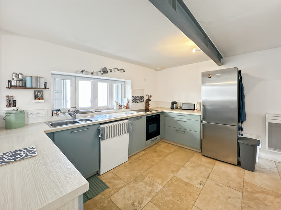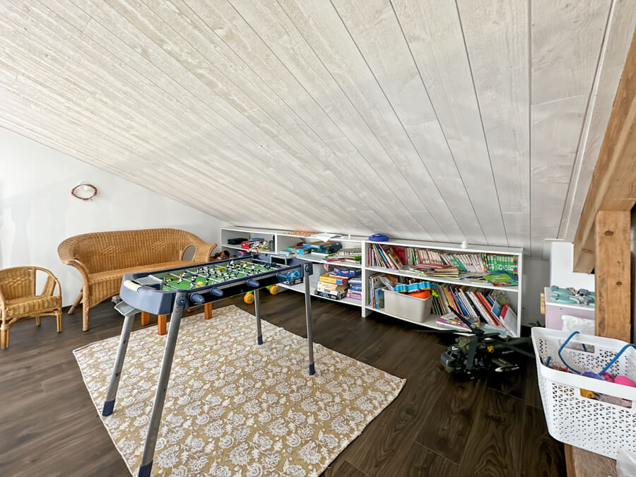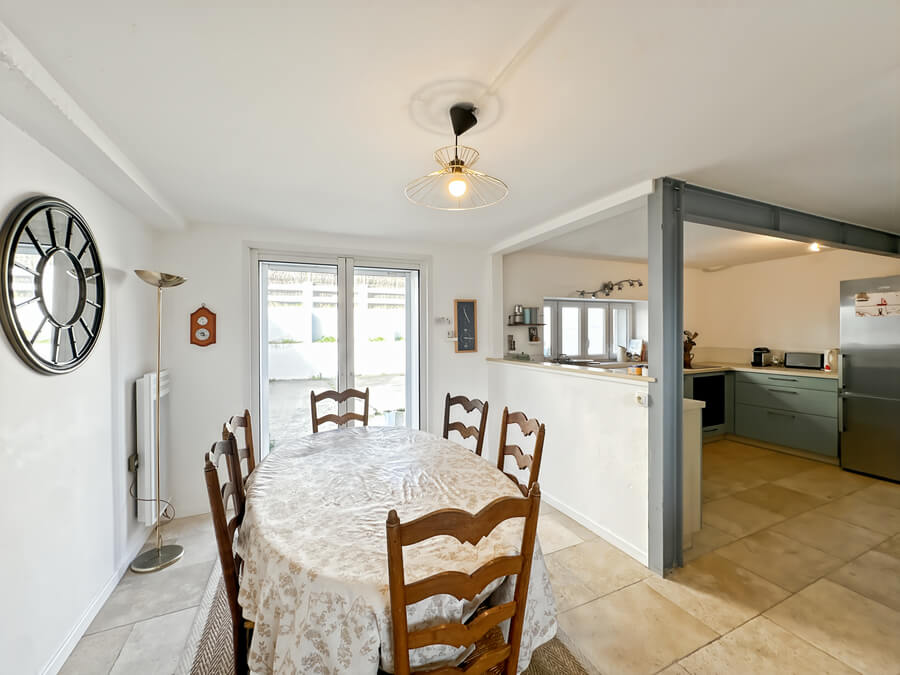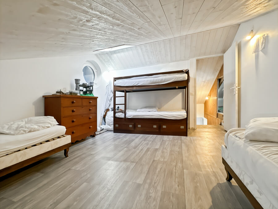 La maison dispose d'un beau séjour donnant sur la cuisine ouverte et la cour, de 3 chambres (2 chambres avec lits de 140cm et une chambre avec 4 lits simples) et salon et une salle de jeux en mezzanine.