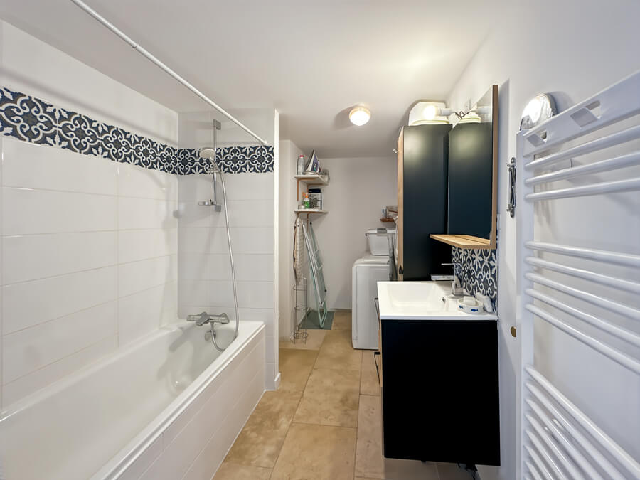 elle dispose d'une salle de bain et de deux WC