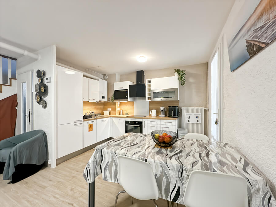 Cette maison à louer se compose au rez-de-chaussée d'un séjour/salon, d'une cuisine et d'une petite buanderie