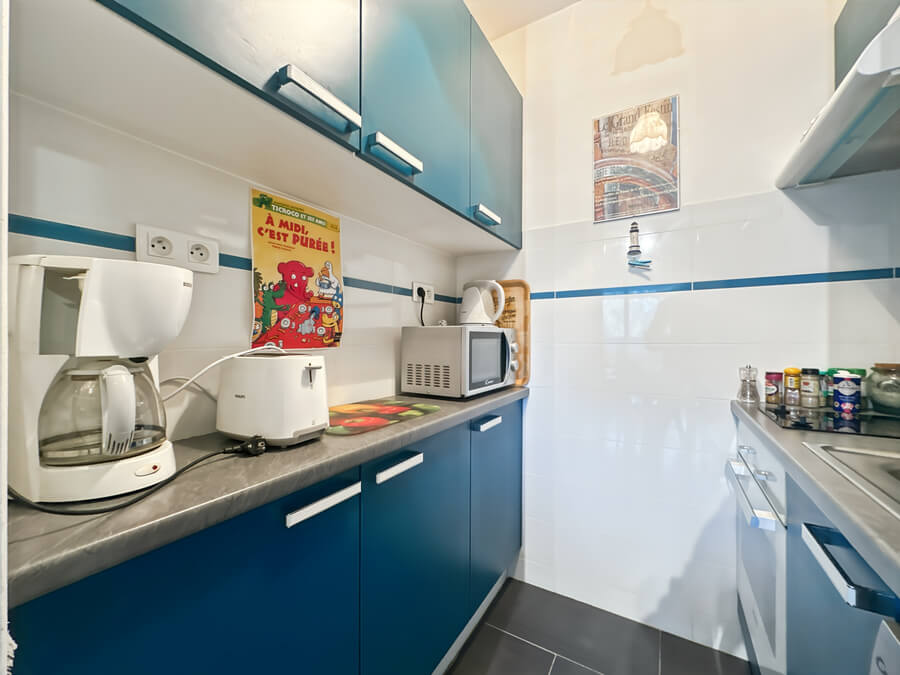 Vous retrouverez dans la chambre un lit double de 140cm ainsi qu'un canapé-lit dans le séjour pour deux personnes.