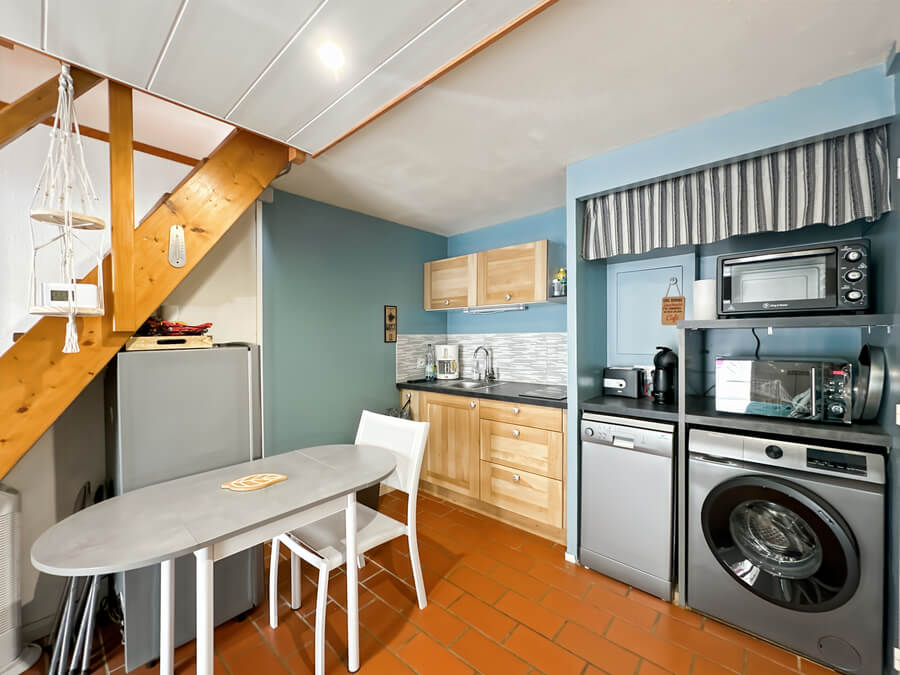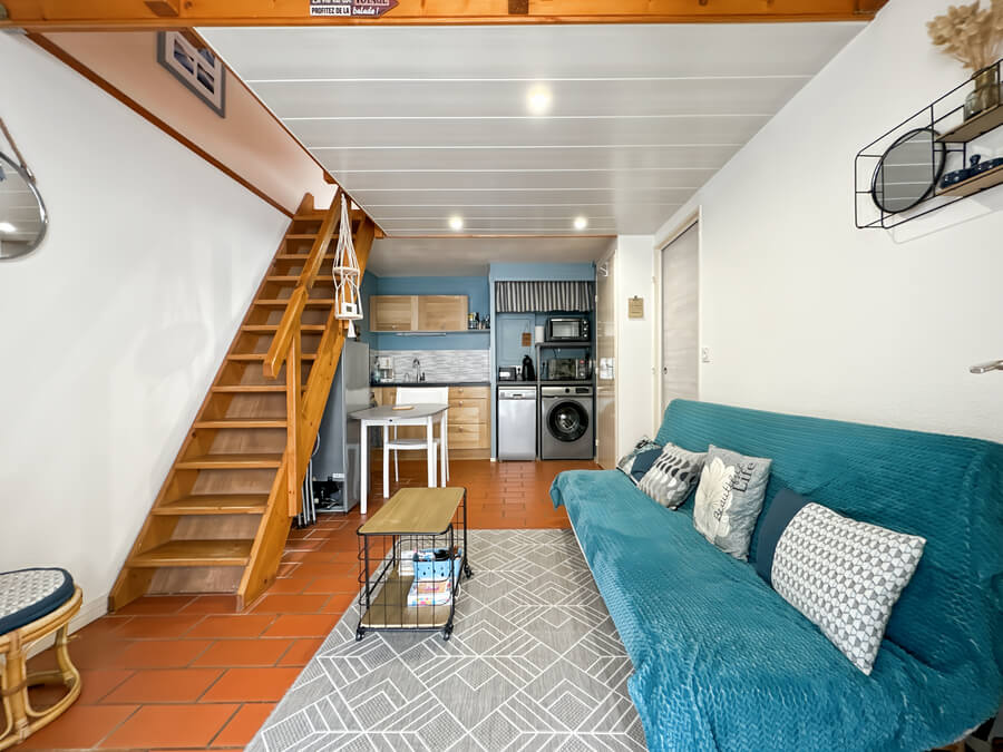 Cette location de vacances se compose d'un séjour/cuisine, d'une chambre, d'une mezzanine et d'une salle d'eau avec WC.