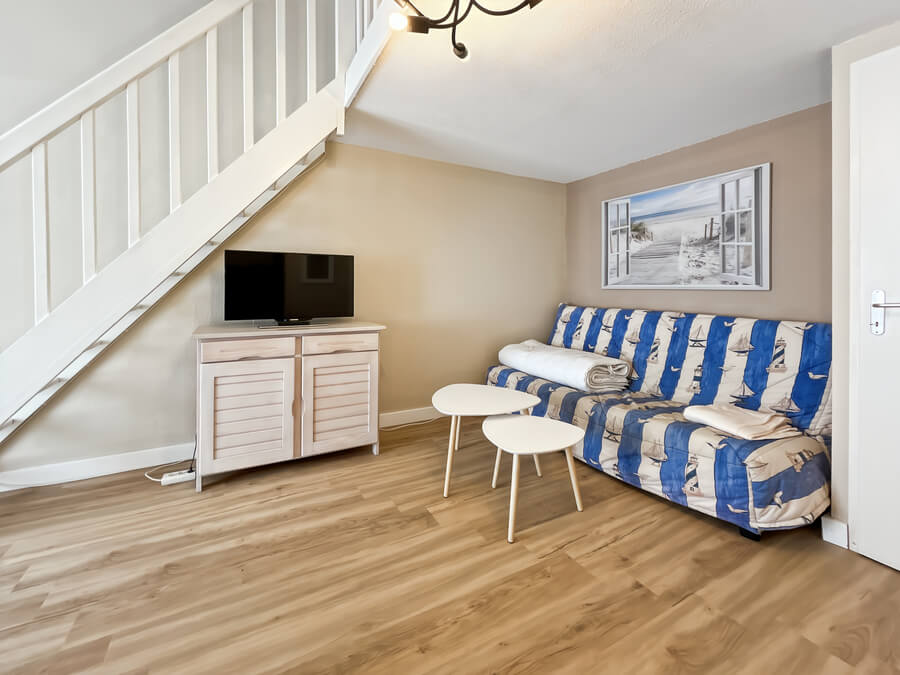 Vous retrouverez dans la chambre et la mezzanine un lit double. Un clic-clac est à disposition dans le séjour.