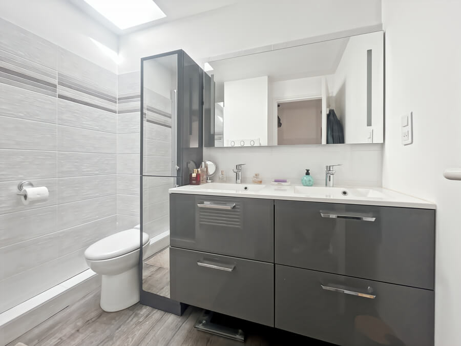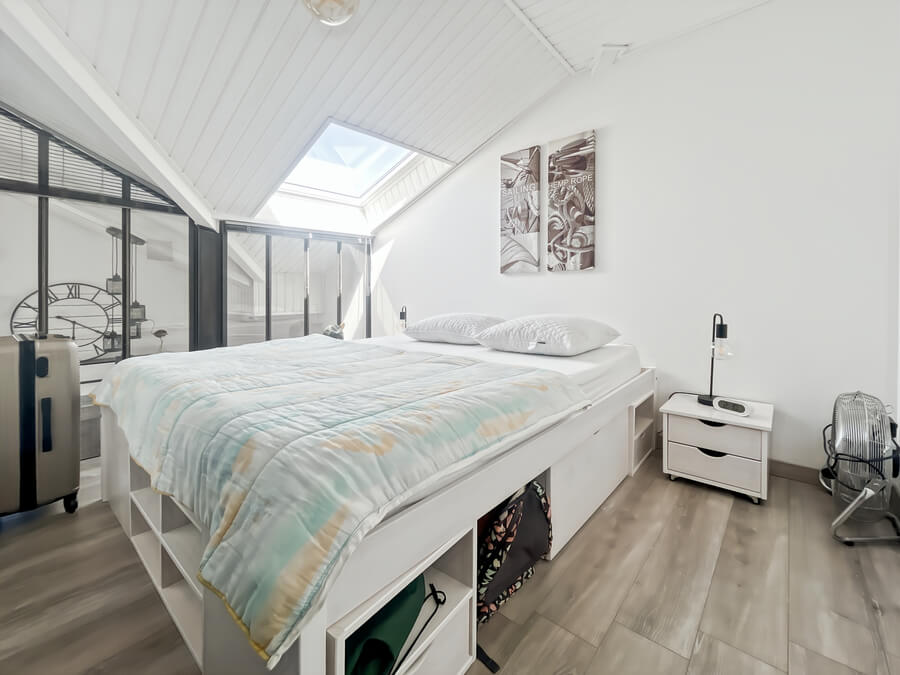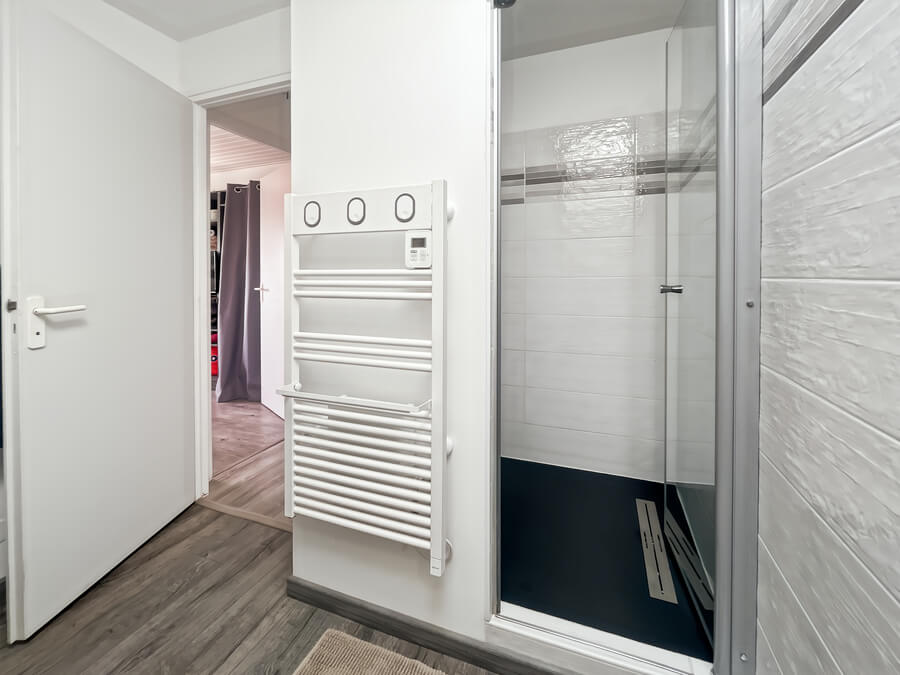 A l'étage, l'appartement dispose de deux chambres et une salle de d'eau avec WC.