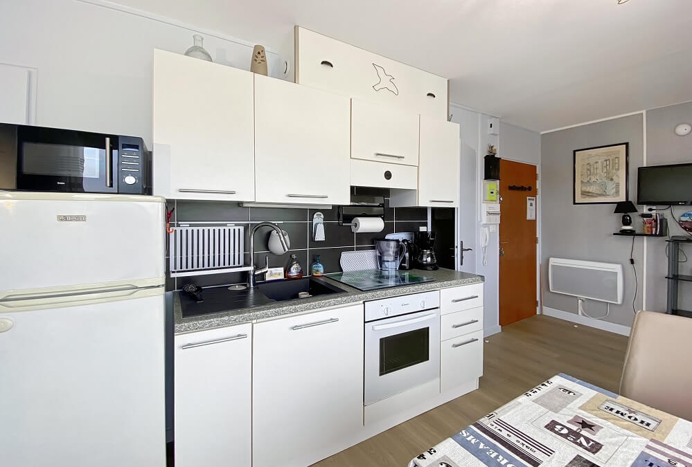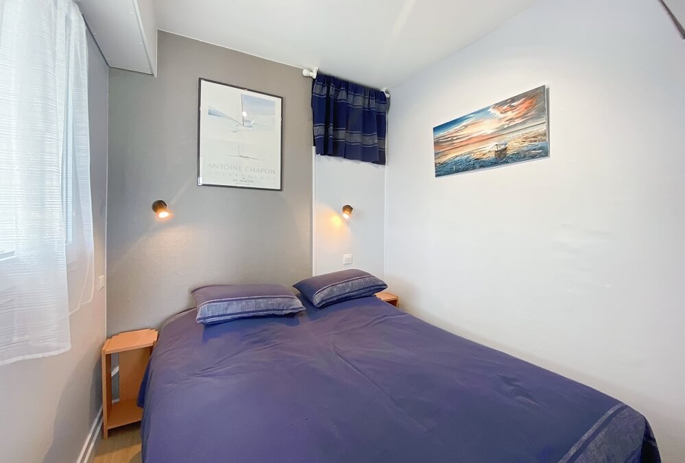 Cet appartement se compose d'un séjour/cuisine avec canapé bz pour couchage (lit de 140), d'une chambre cabine avec deux lits électrique de 70 (pouvant faire un lit de 140), d'une loggia avec salon de jardin et d'une salle d'eau avec WC.